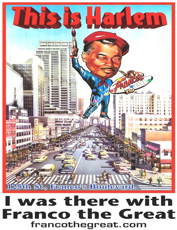 For over 40 years, Franco The Great's creative artistry has mesmerized audiences privileged enough to see his creative artwork on over 200 gates on 125th street in Harlem, N.Y. Millions of foreign tourists, Americans and especially Harlemites have been mesmerized by his magnificent creative artwork. They saw Harlem come alive with images that depicted and represented the phenomenal accomplishments of African Americans. We invite you to support Franco's ongoing artistic initiatives and celebrate his life's works by purchasing his books, prints or creative ash paintings and sharing them with your friends and loved ones and spread the same love Franco has spread during his life. Thank you!!